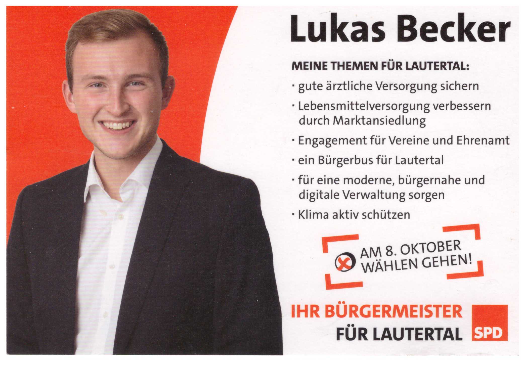 So wählten im Herbst letzten Jahres  viele Lautertaler Bürger, einen neuen Bürgermeister, der dank der Unterstützung der SPD, in allen  sieben Dörfer der Gemeinde, auf mindesten 2 großformatigen Bauzaunbanner, angepriesen wurde. Lukas Becker, als Azubi im Lautertaler Rathaus gestartet, ist nun der Chef im Hause.