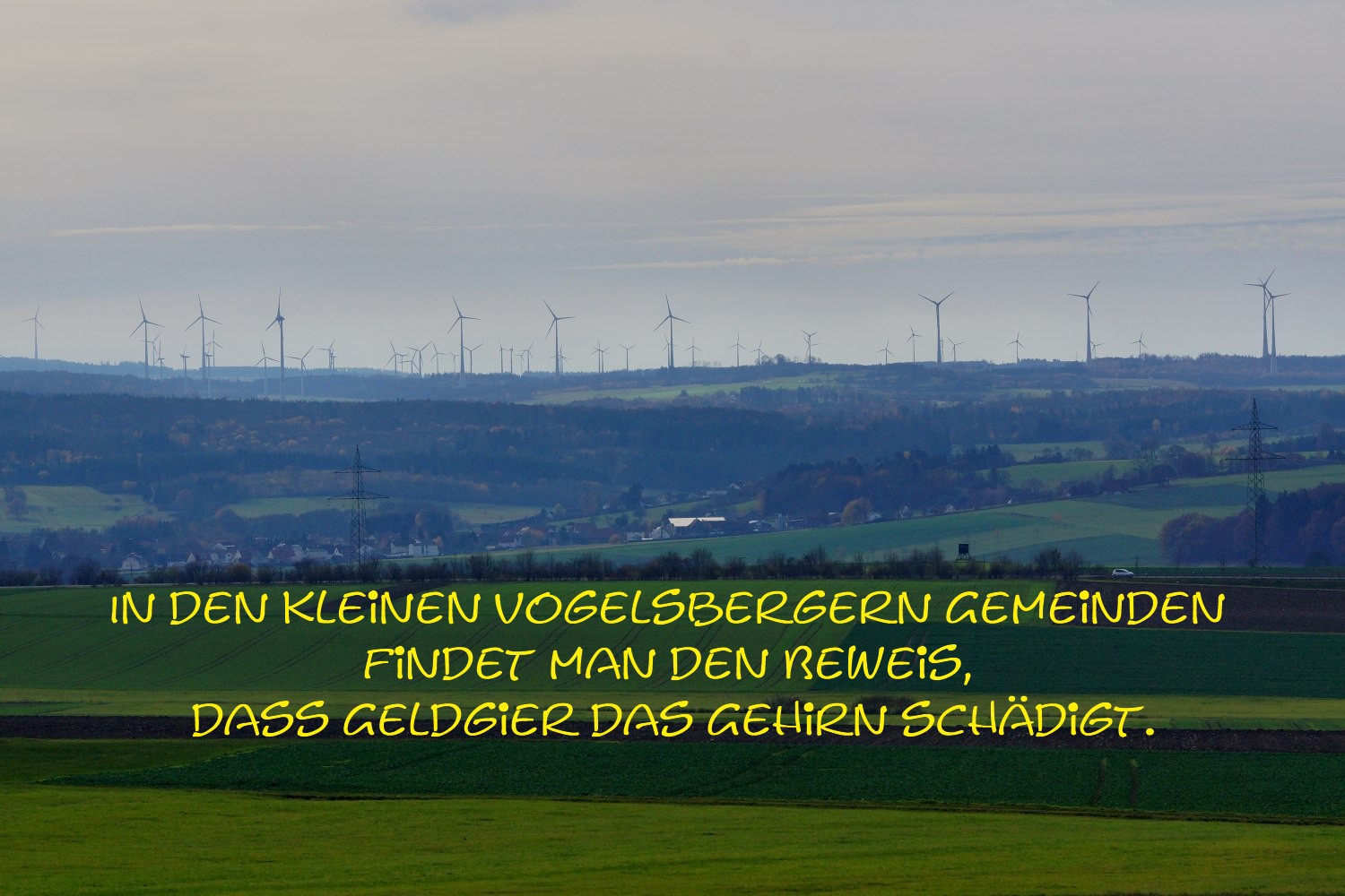 Sie spielen sich als Klimaretter auf, doch wenn es an's Geld, dann eher nicht. Absahnen auf Kosten der Stromkunden ist deren Devise. Ja, auch Ulrichstein, OVAG und der Luftikus aus Freiensteinau gehören dazu. Es geht bei dieser "Energiewende" nicht um Klimarettung, oder andere ehrenwerte Sachen, es geht um die schnelle Mark. Dafür zerstören sie wie im Vogelsberg, weite Landstriche. Riesige Naturflächen und die Lebensräume unserer Großvögel.