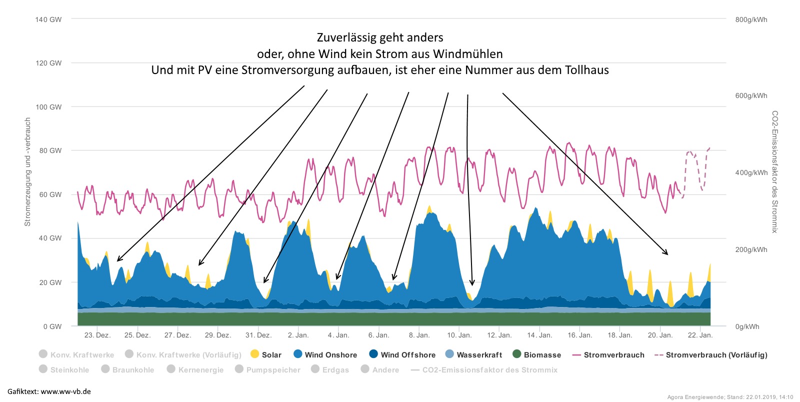 Und ausgerechnet diese verhasste Stromliefergarant ist die Kohle und Atom. Wenn wir diese nicht hätten, sähe es am vergangenem Montag echt trübe aus mit den Ladesäulen. Strom aus Windkraft und PV standen nur unzureichend zur Verfügung und so sehe es außer in den Ladesäulen auch in unseren Steckdosen, bei der Wasserversorgung und in den meisten Industriehallen, echt trübe aus.
