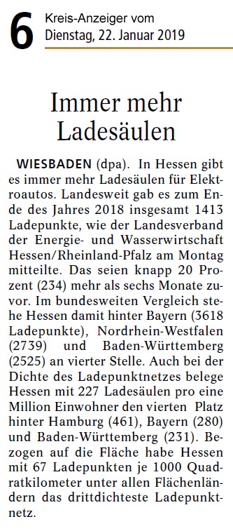Kreisanzeiger: "Immer mehr Ladesäulen"