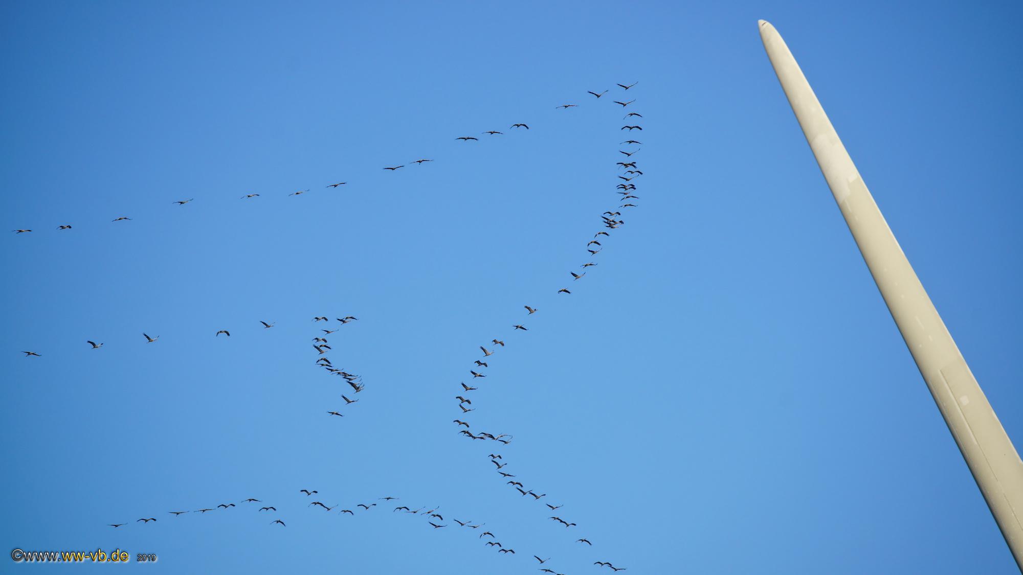 Da Kraniche bevorzugt mit Rückenwind fliegen, ist die Chance des Ausweichens minimal. Wir möchten es nicht erleben, dass es passiert, aber wenn, dann muss sich die OVAG unangenehme Fragen gefallen lassen.