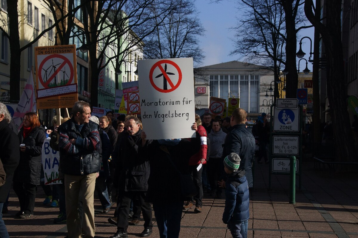 Jörg Clar Mitinitiator und Vorsitzender des Regionalverband Vernunftkraft Osthessen, begrüßte ca. 800 Demonstranten auf dem Bahnhofsvorplatz in Fulda. Mitglieder von Bürgerinitiativen aus Hessen und auch aus den Bundesländern Bayern, Nordrhein-Westfalen, Rheinland-Pfalz und sogar aus Niedersachsen waren angereist um sich gegen den weiteren Ausbau der Windindustrie in ihren Heimatgemeinden zu wehren.