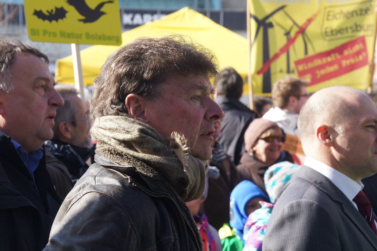 Jörg Clar Mitinitiator und Vorsitzender des Regionalverband Vernunftkraft Osthessen, begrüßte ca. 800 Demonstranten auf dem Bahnhofsvorplatz in Fulda. Mitglieder von Bürgerinitiativen aus Hessen und auch aus den Bundesländern Bayern, Nordrhein-Westfalen, Rheinland-Pfalz und sogar aus Niedersachsen waren angereist um sich gegen den weiteren Ausbau der Windindustrie in ihren Heimatgemeinden zu wehren.