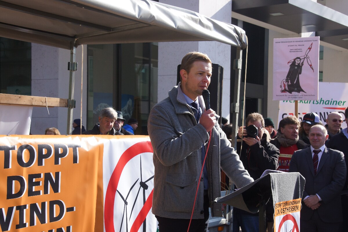 Weiterhin prangerte er den Landkreis Fulda an, der sich an einem Projekt zum Schutz des Rotmilan beteiligte und gleichzeitig die Abgeordneten für den Bau von Windindustrieanlagen in Nähe derer Horste stimmten.