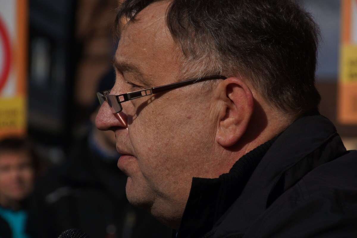 Jörg Clar Mitinitiator und Vorsitzender des Regionalverband Vernunftkraft Osthessen, begrüßte ca. 800 Demonstranten auf dem Bahnhofsvorplatz in Fulda. Mitglieder von Bürgerinitiativen aus Hessen und auch aus den Bundesländern Bayern, Nordrhein-Westfalen, Rheinland-Pfalz und sogar aus Niedersachsen waren angereist um sich gegen den weiteren Ausbau der Windindustrie in ihren Heimatgemeinden zu wehren.
