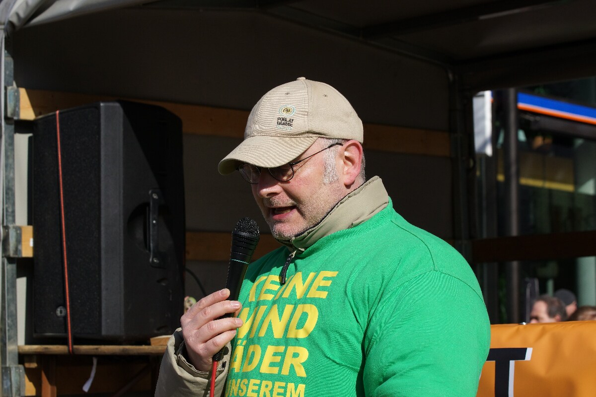 Jörg Clar Mitinitiator und Vorsitzender des Regionalverband Vernunftkraft Osthessen, begrüßte ca. 800 Demonstranten auf dem Bahnhofsvorplatz in Fulda. Mitglieder von Bürgerinitiativen aus Hessen und auch aus den Bundesländern Bayern, Nordrhein-Westfalen, Rheinland-Pfalz und sogar aus Niedersachsen waren angereist um sich gegen den weiteren Ausbau der Windindustrie in ihren Heimatgemeinden zu wehren.