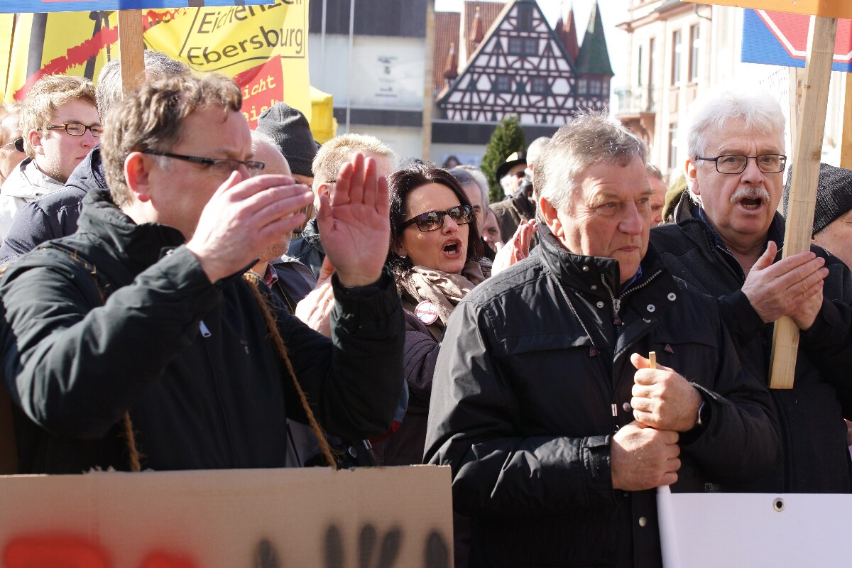Aus dem Demozug schallten ihnen Wörter wie: " Verräter", "Naturzerstörer", "Wendehälse" entgegen.