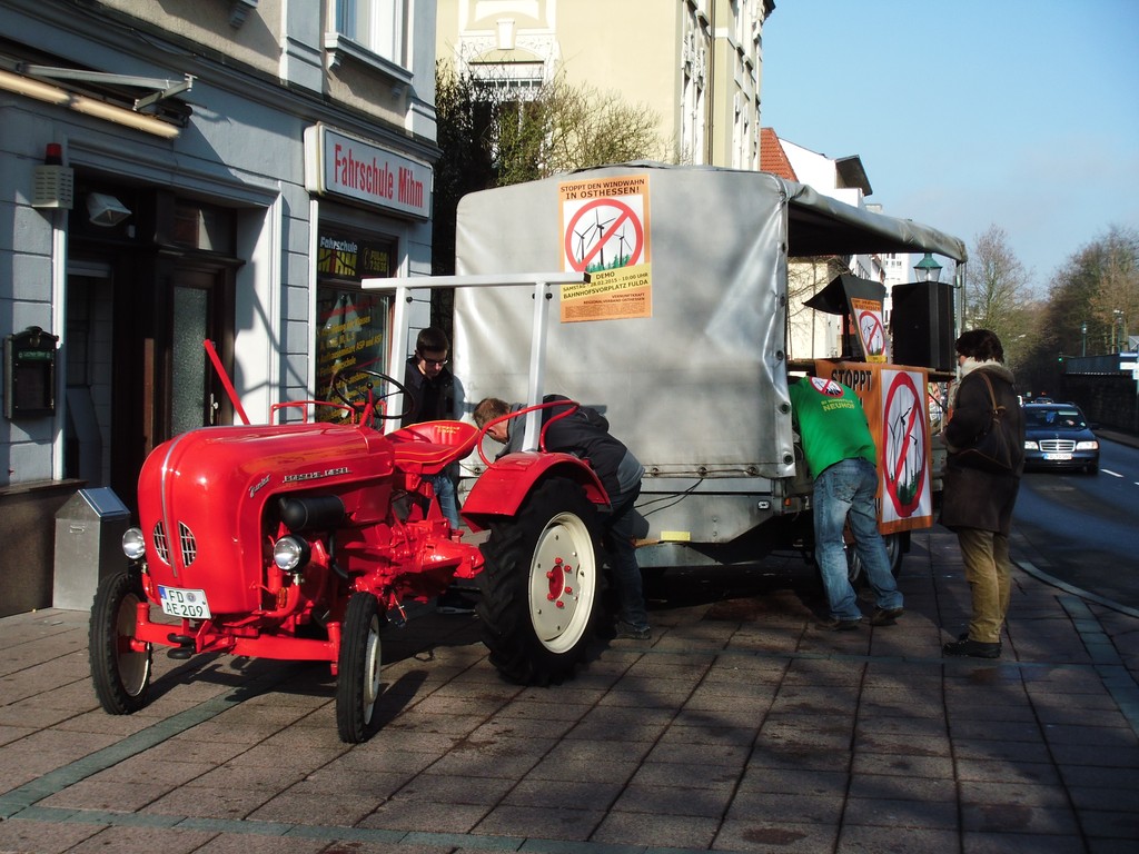 Vollkommen friedlich zogen die Demonstranten weiter über die genehmigte Route und vor dem Verwaltungsgebäude der Rhönenergie, sie ist neben der OVAG einer der Haupt-Subventionsabschöpfer  und Naturzerstörer in Hessen, kam es schließlich zu der Windwahnkundgebung.