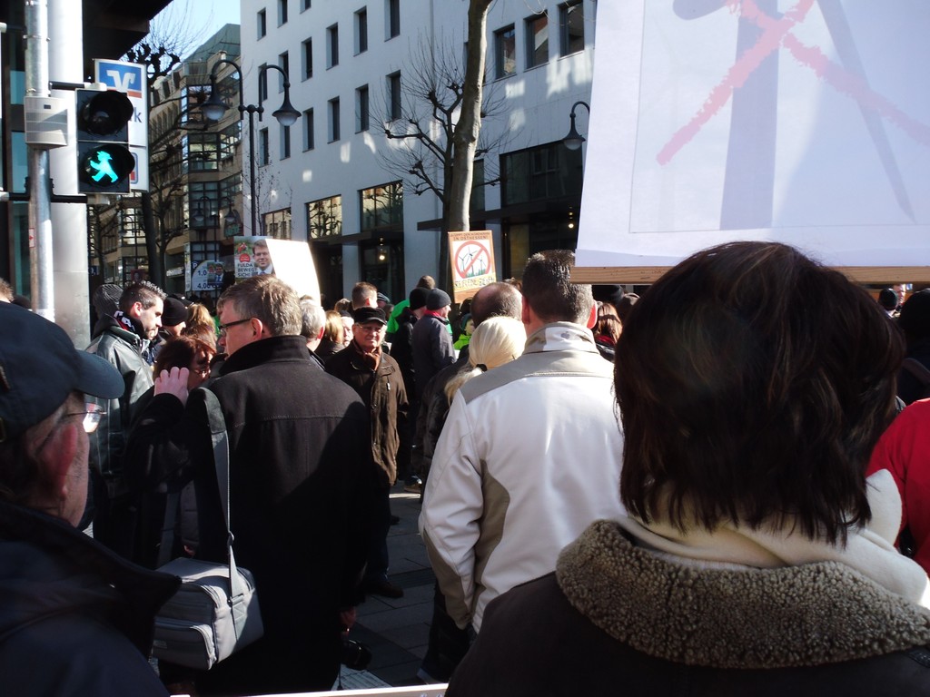 Vollkommen friedlich zogen die Demonstranten weiter über die genehmigte Route und vor dem Verwaltungsgebäude der Rhönenergie, sie ist neben der OVAG einer der Haupt-Subventionsabschöpfer und Naturzerstörer in Hessen, kam es schließlich zu der Windwahnkundgebung.