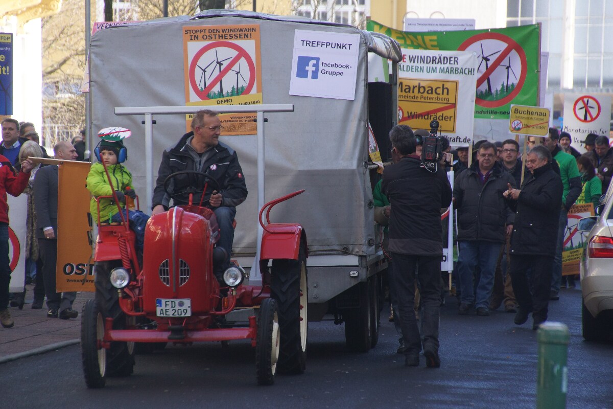 Jörg Clar Mitinitiator und Vorsitzender des Regionalverband Vernunftkraft Osthessen, begrüßte ca. 800 Demonstranten auf dem Bahnhofsvorplatz in Fulda. Mitglieder von Bürgerinitiativen aus Hessen und auch aus den Bundesländern Bayern, Nordrhein-Westfalen, Rheinland-Pfalz und sogar aus Niedersachsen waren angereist um sich gegen den weiteren Ausbau der Windindustrie in ihren Heimatgemeinden zu wehren.