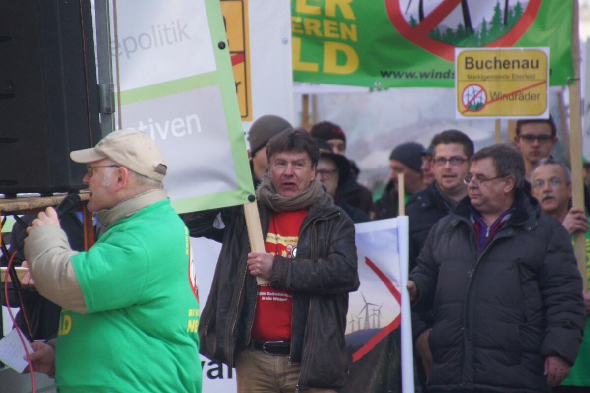 Jörg Clar Mitinitiator und Vorsitzender des Regionalverband Vernunftkraft Osthessen, begrüßte ca. 800 Demonstranten auf dem Bahnhofsvorplatz in Fulda. Mitglieder von Bürgerinitiativen aus Hessen und auch aus den Bundesländern Bayern, Nordrhein-Westfalen, Rheinland-Pfalz und sogar aus Niedersachsen waren angereist um sich gegen den weiteren Ausbau der Windindustrie in ihren Heimatgemeinden zu wehren.