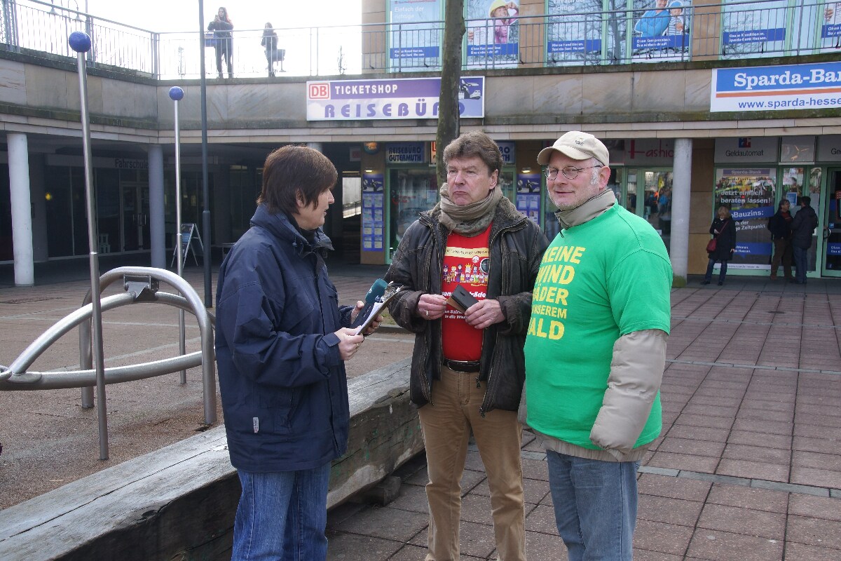 Vollkommen friedlich zogen die Demonstranten weiter über die genehmigte Route und vor dem Verwaltungsgebäude der Rhönenergie, sie ist neben der OVAG einer der Haupt-Subventionsabschöpfer  und Naturzerstörer in Hessen, kam es schließlich zu der Windwahnkundgebung.