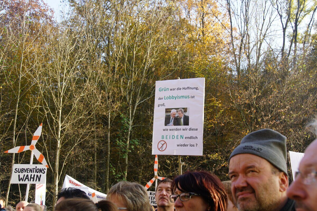 Anlässlich einer Einweihungsfeier von 14 Stück 207 Meter hohen Zufallsstromerzeugungsanlagen, bei denen sich der grüne Ministerpräsident von den Profiteuren und Ideologen dieser Energiewende feiern ließ, trafen sich auch circa 500 Menschen, zu einer Demo im Harthölzer Wald in Baden-Württemberg.