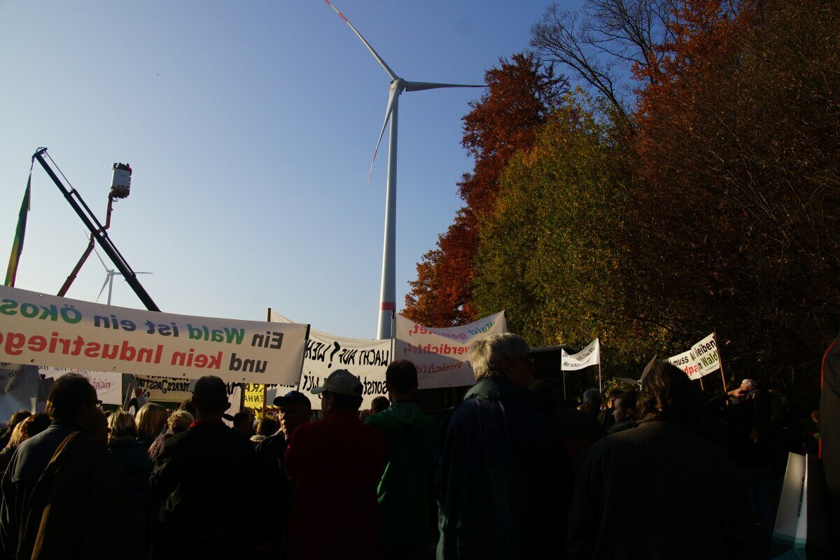 Anlässlich einer Einweihungsfeier von 14 Stück 207 Meter hohen Zufallsstromerzeugungsanlagen, bei denen sich der grüne Ministerpräsident von den Profiteuren und Ideologen dieser Energiewende feiern ließ, trafen sich auch circa 500 Menschen, zu einer Demo im Harthölzer Wald in Baden-Württemberg.
