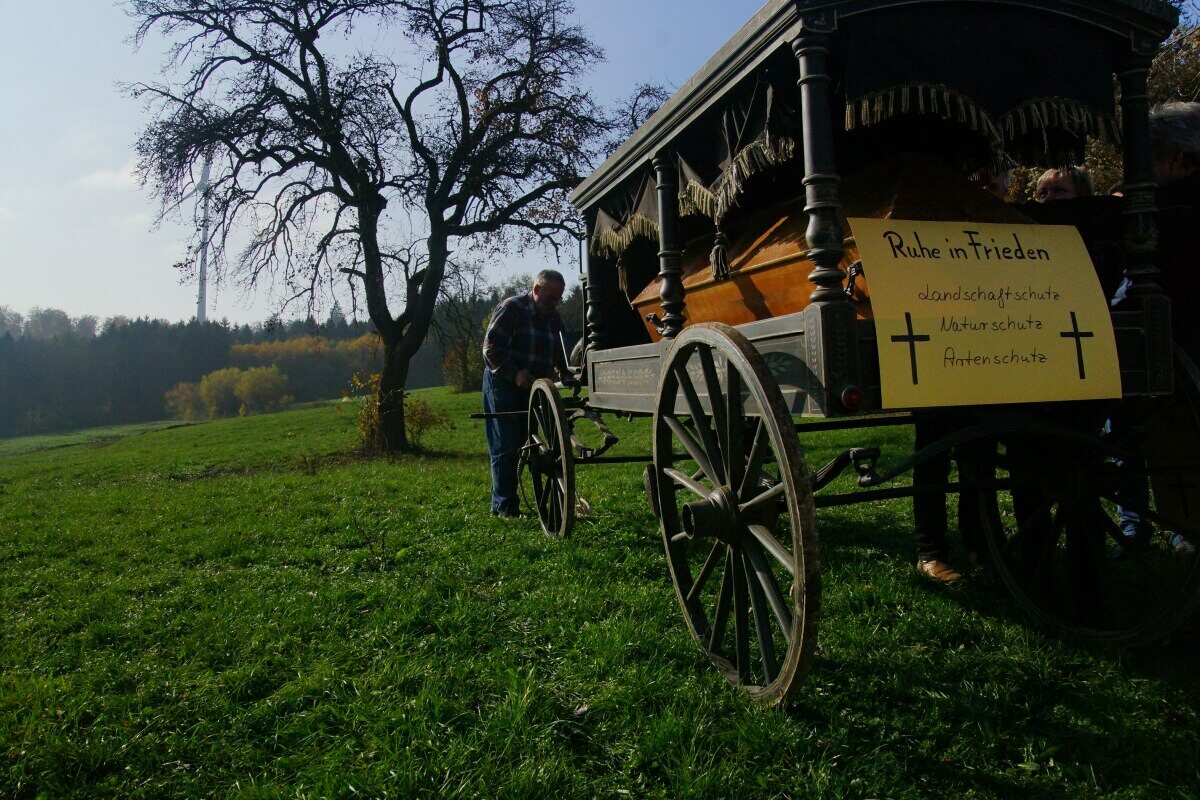 Anlässlich einer Einweihungsfeier von 14 Stück 207 Meter hohen Zufallsstromerzeugungsanlagen, bei denen sich der grüne Ministerpräsident von den Profiteuren und Ideologen dieser Energiewende feiern ließ, trafen sich auch circa 500 Menschen, zu einer Demo im Harthölzer Wald in Baden-Württemberg.