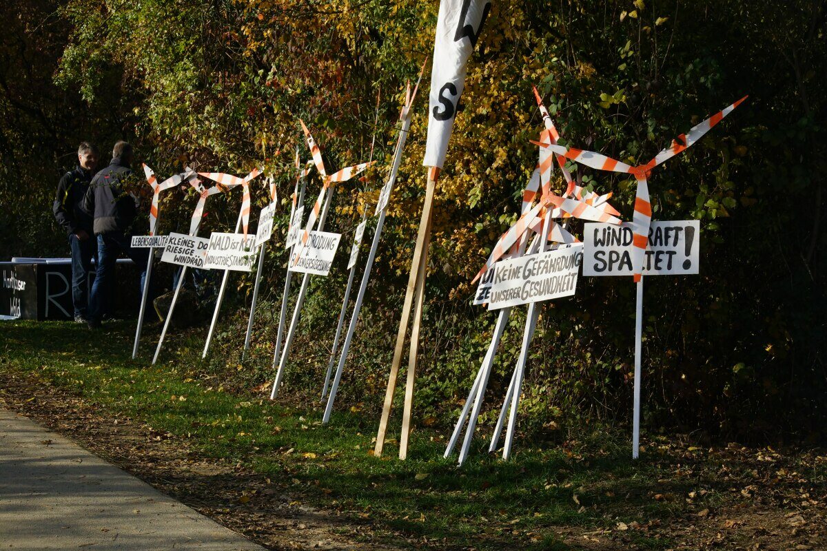 Ihr Unmut richtet sich gegen die unsinnige Zerstörung  ihrer Wälder durch Windindustrieanlagen. Schon jetzt zieren Schilder am Wegesrand, die das begehen der Waldwege an Werktagen verbietet.