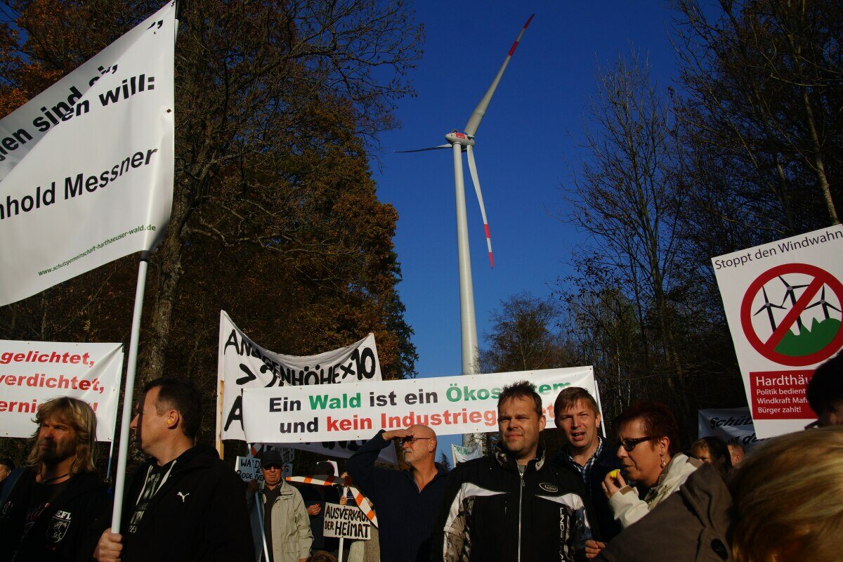 Anlässlich einer Einweihungsfeier von 14 Stück 207 Meter hohen Zufallsstromerzeugungsanlagen, bei denen sich der grüne Ministerpräsident von den Profiteuren und Ideologen dieser Energiewende feiern ließ, trafen sich auch circa 500 Menschen, zu einer Demo im Harthölzer Wald in Baden-Württemberg.