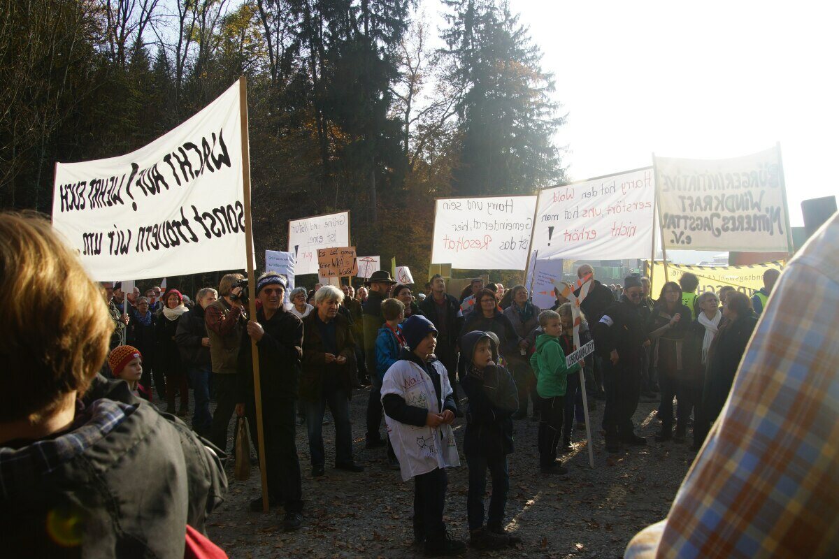 Anlässlich einer Einweihungsfeier von 14 Stück 207 Meter hohen Zufallsstromerzeugungsanlagen, bei denen sich der grüne Ministerpräsident von den Profiteuren und Ideologen dieser Energiewende feiern ließ, trafen sich auch circa 500 Menschen, zu einer Demo im Harthölzer Wald in Baden-Württemberg.