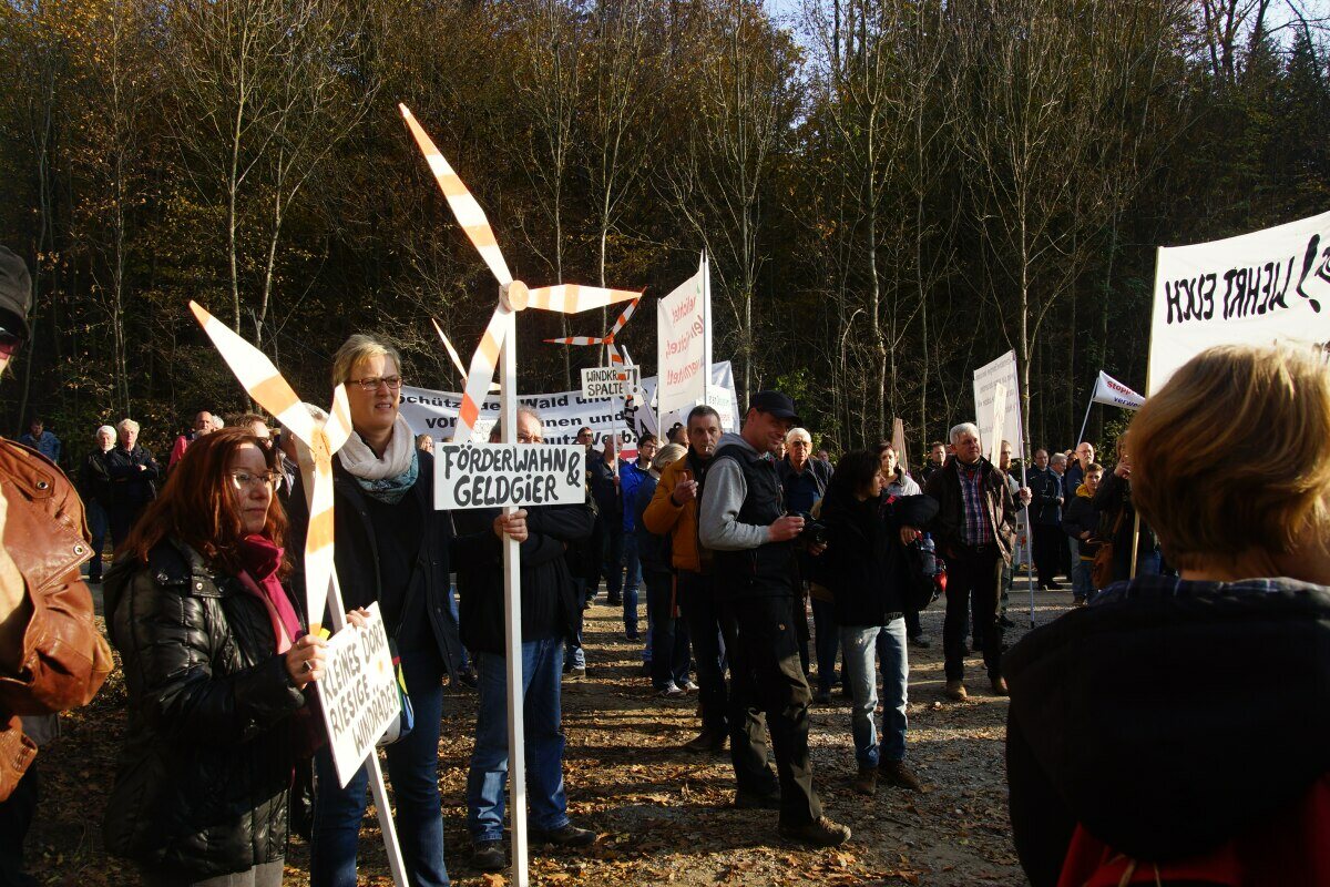 Anlässlich einer Einweihungsfeier von 14 Stück 207 Meter hohen Zufallsstromerzeugungsanlagen, bei denen sich der grüne Ministerpräsident von den Profiteuren und Ideologen dieser Energiewende feiern ließ, trafen sich auch circa 500 Menschen, zu einer Demo im Harthölzer Wald in Baden-Württemberg.