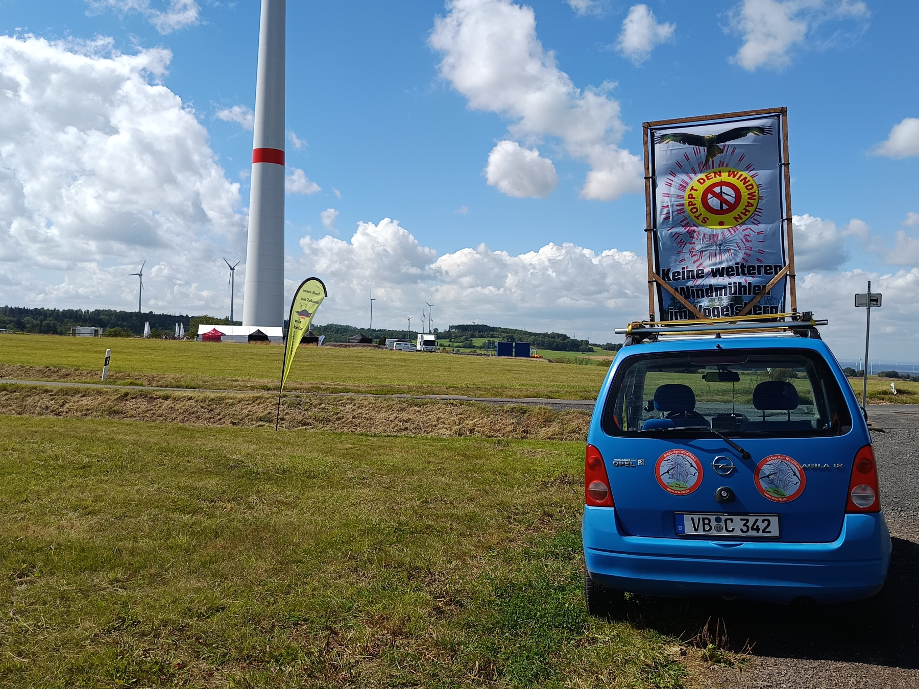 während die Einweihungsfeier lief, lag unweit entfernt unter einer Windkraftanlage, immer noch Teile eines vor wenigen Tagen erschlagenen Rotmilans
