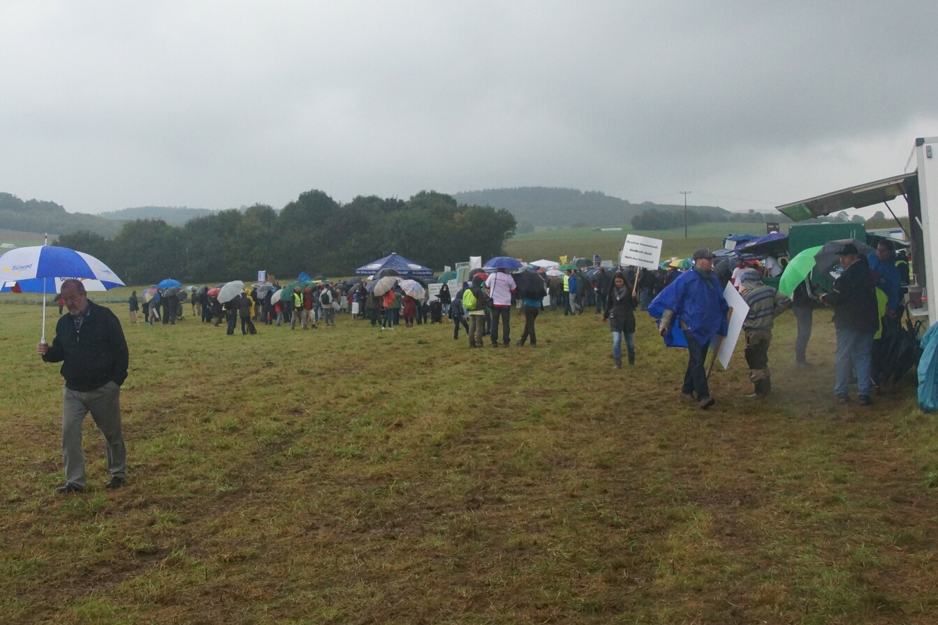 Trotz Sauwetter haben sich zur Windwahndemo in Freiensteinau, über 800 Menschen aus weiten Teilen Hessens und sogar weit darüber hinaus, eingefunden.