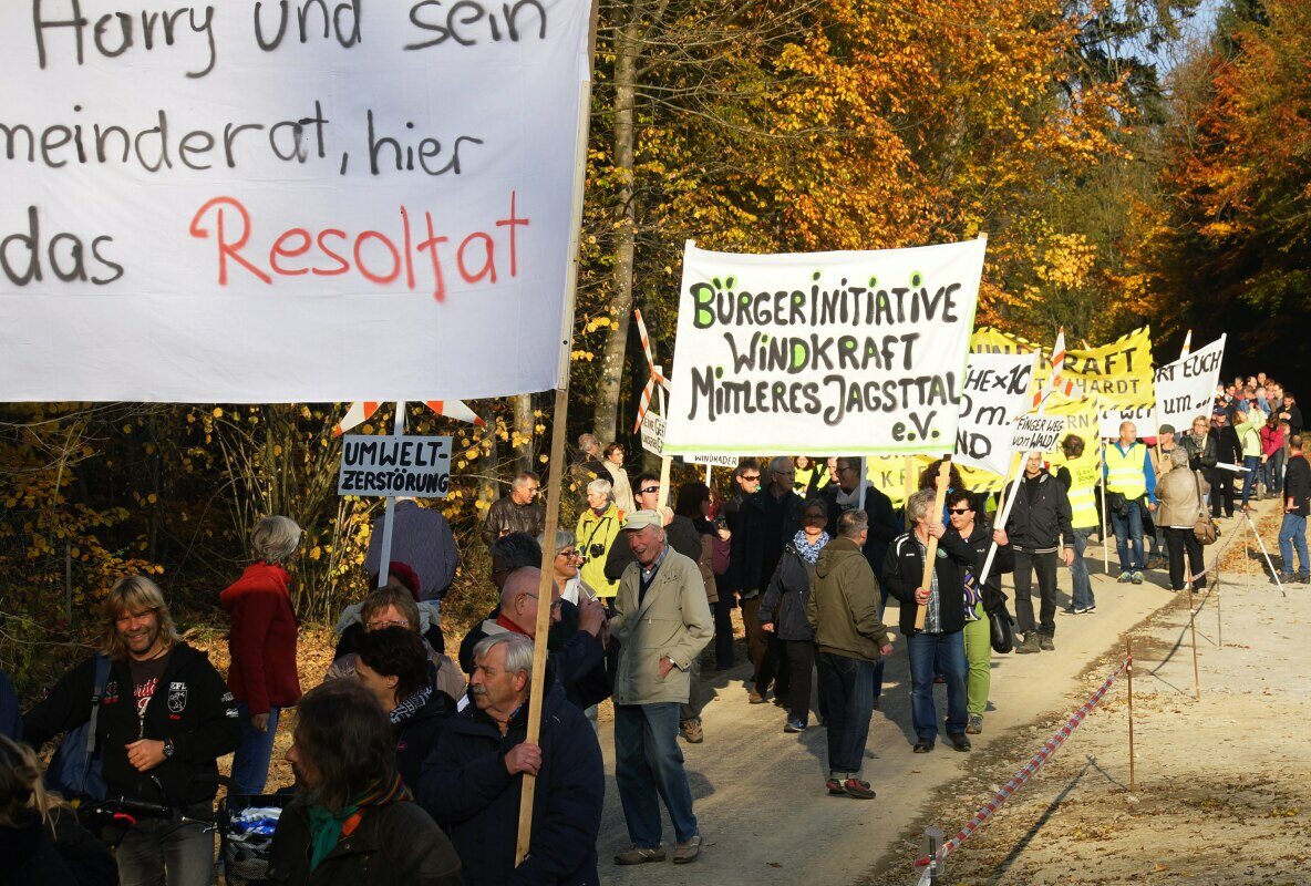 Anlässlich einer Einweihungsfeier von 14 Stück 207 Meter hohen Zufallsstromerzeugungsanlagen, bei denen sich der grüne Ministerpräsident von den Profiteuren und Ideologen dieser Energiewende feiern ließ, trafen sich auch circa 500 Menschen, zu einer Demo im Harthölzer Wald in Baden-Württemberg.