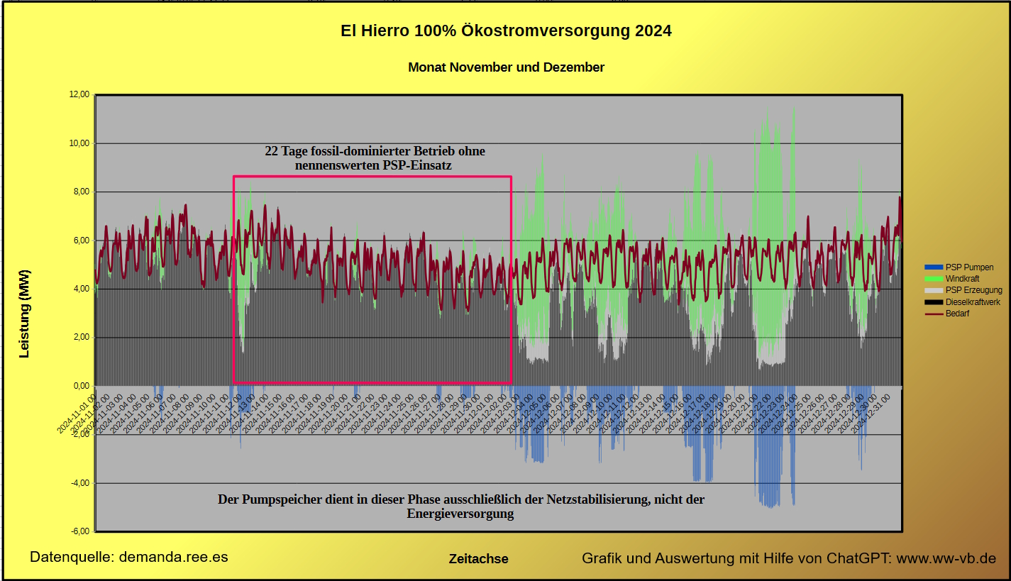 Ziel dieser Auswertung ist es die tatsächliche Stromversorgung auf El Hierro anhand offizieller Betriebsdaten sachlich zu analysieren.